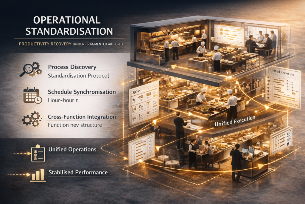 It is the integration of operational P&L discipline, Lean configuration logic, behavioural architecture and statistical control thinking applied inside F&B-intensive assets.